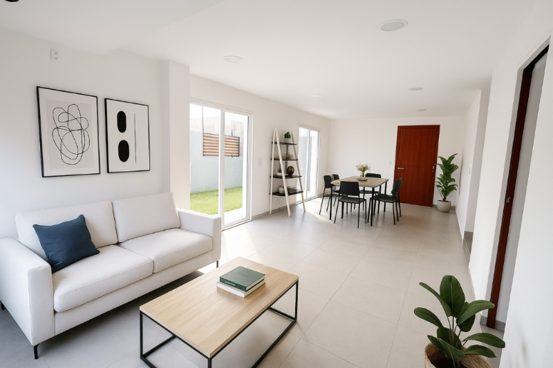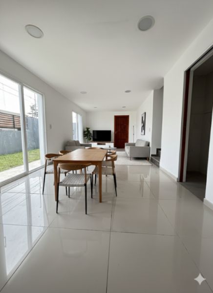 AMPLIO LIVING COMEDOR INTEGRADO A TRAVES DEL MISMO SE INGRESA AL INMUEBLE, SE DESTACAN SUS AMPLIOS VENTANALES ESTILO BALCON, POR MEDIO DE LOS CUALES SE TIENE ACCESO AL PATIO Y AL JARDIN OTORGANDO GRAN LUMINOSIDAD HASTA ALTAS HORAS DE LA TARDE