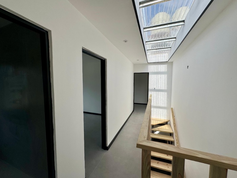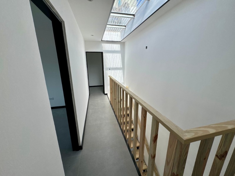 La planta alta, que se accede por una escalera revestida con varillas de madera que le dan un toque de diseño al ambiente, está dedicada al descanso, con tres dormitorios cómodos y soleados que comparten un baño completo con ducha.